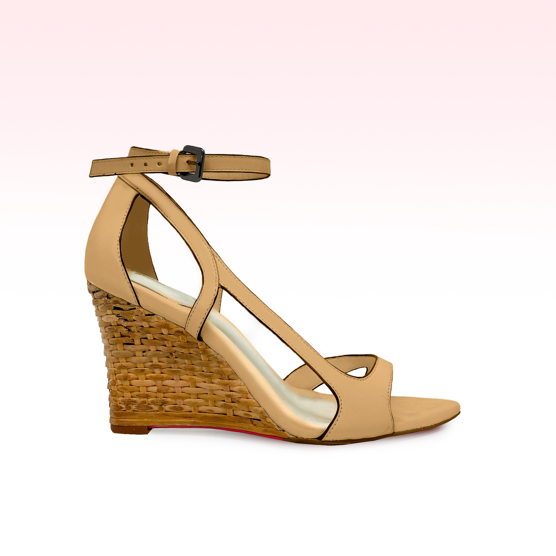 Sandália em couro vitral com salto anabela de linhas suaves, celebrando a aura noturna de deusa Selene. Sofisticado e versátil, o modelo traduz a feminilidade em sua forma mais etérea.